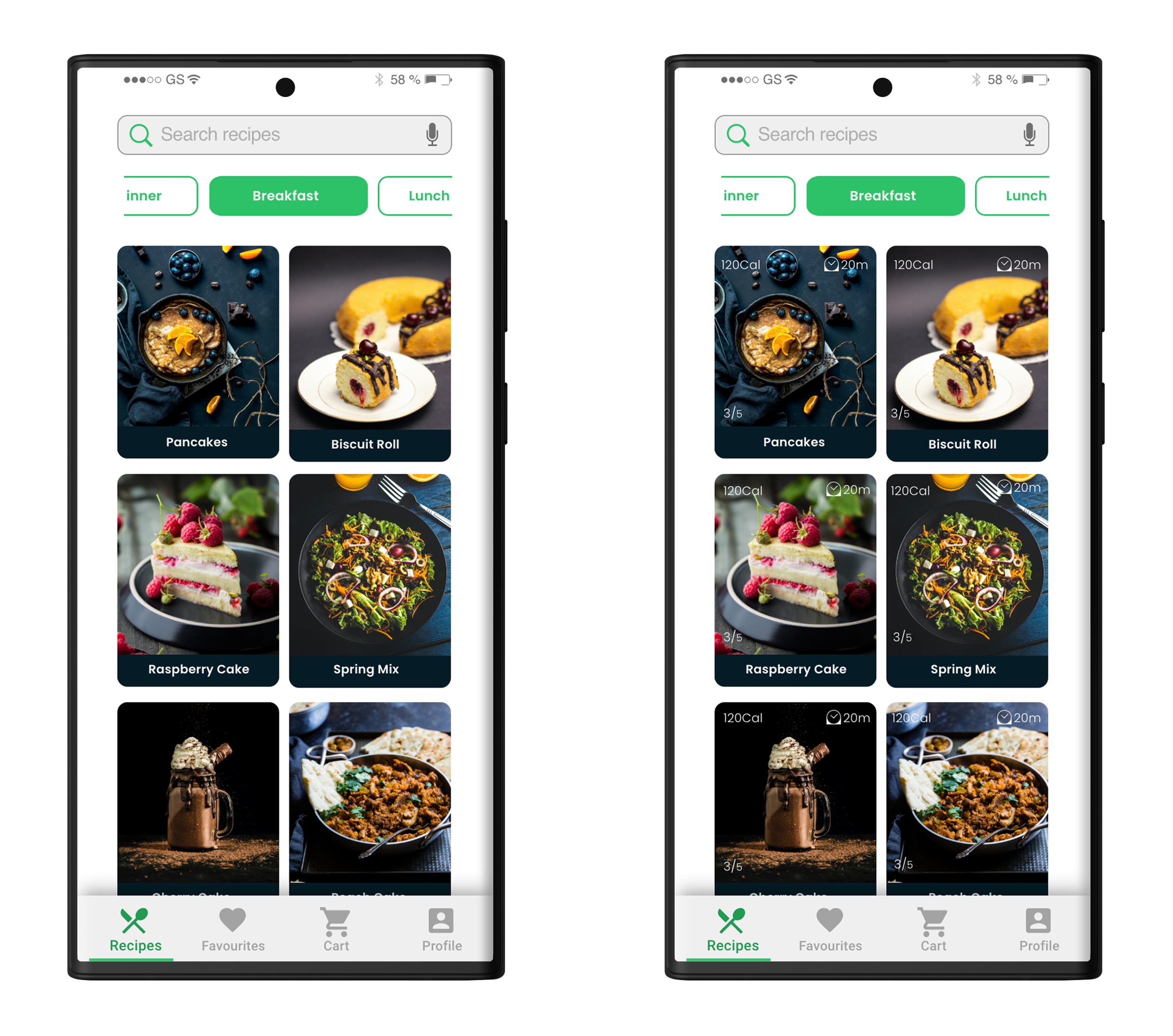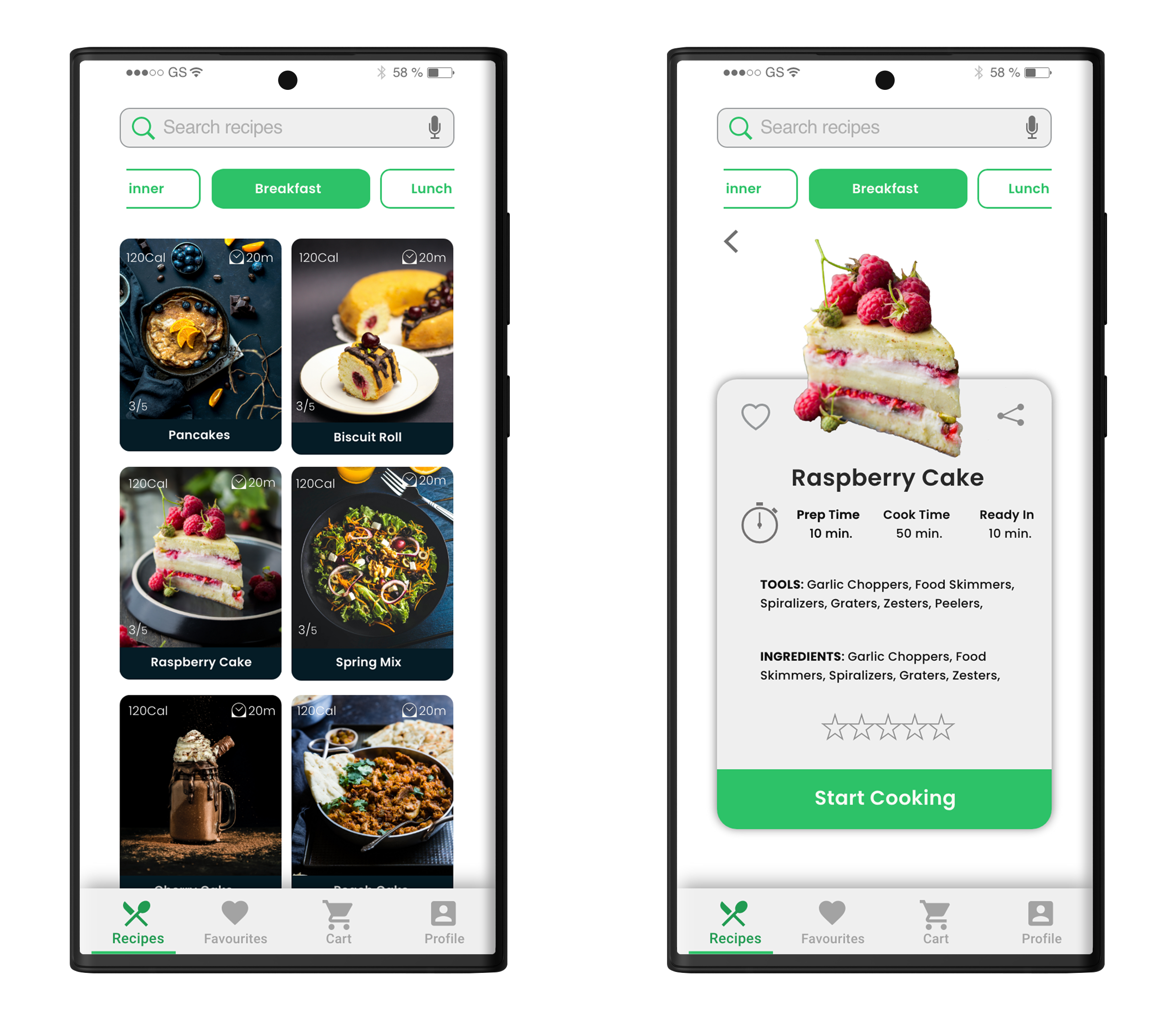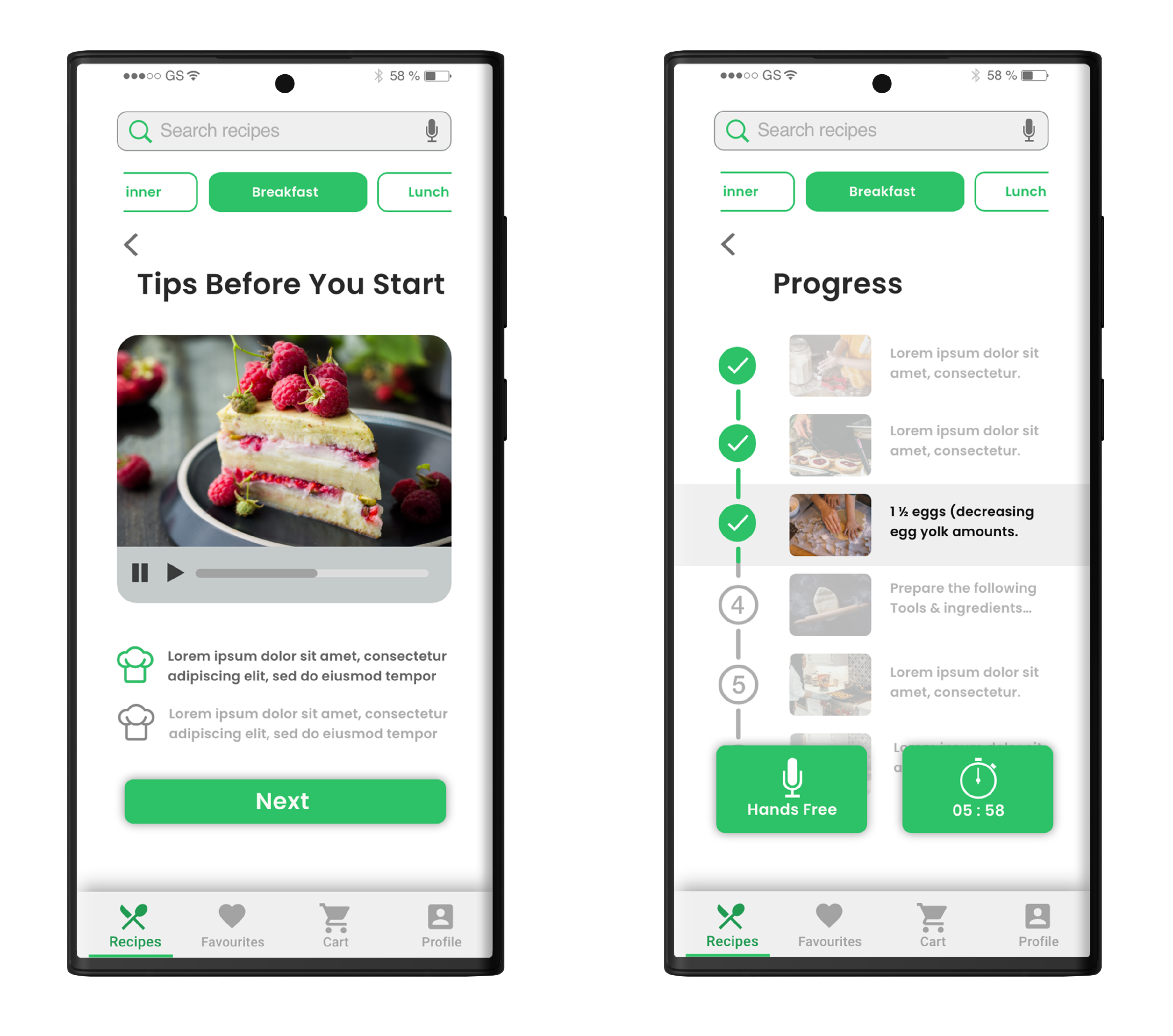 - Add an option to follow cooking steps presented as a text list, images with descriptions (to compare the current result with the expected result), or follow the steps with detailed video instructions.
