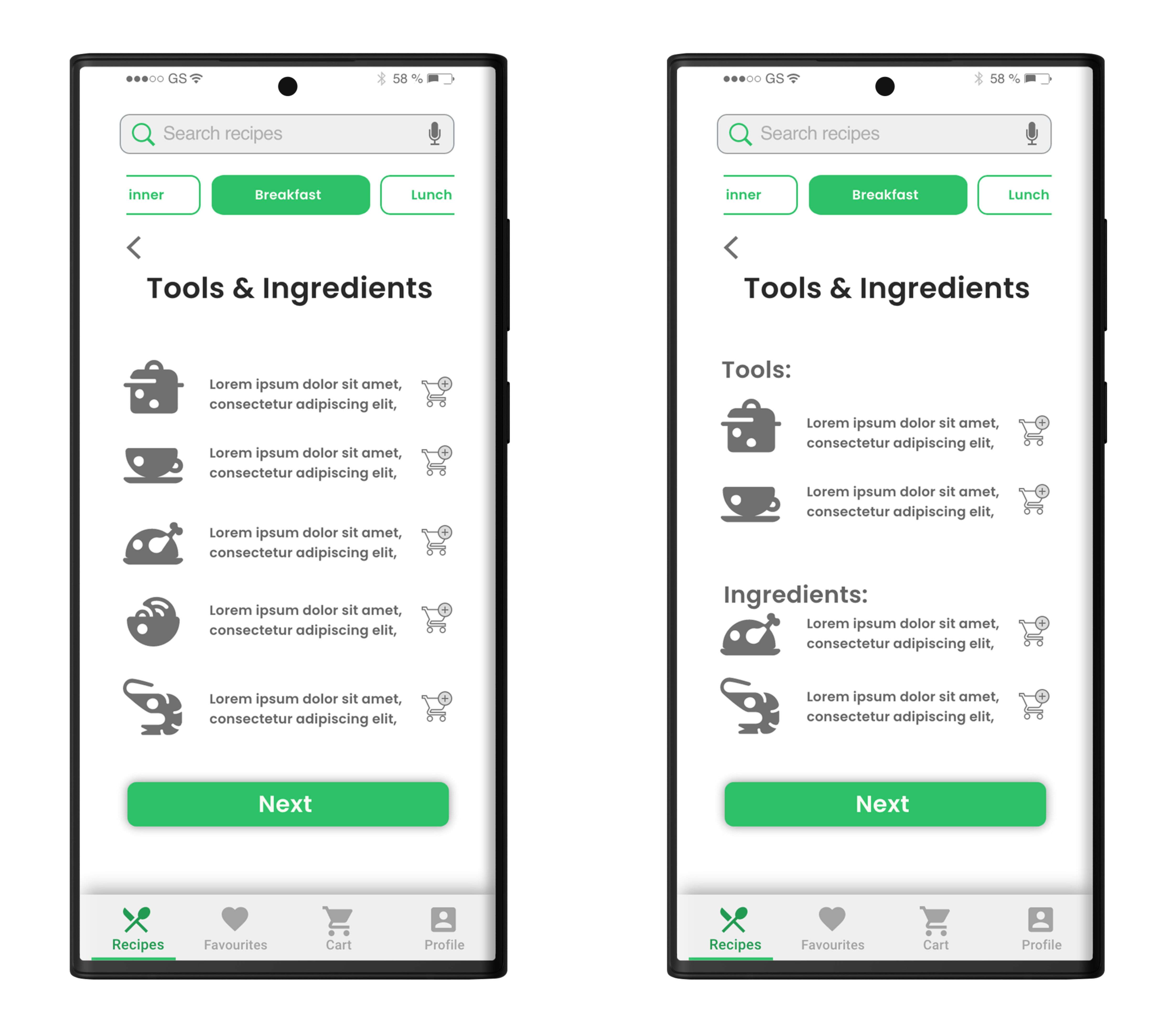 The following changes have been made on the Tools & Ingredients screen after users commented: