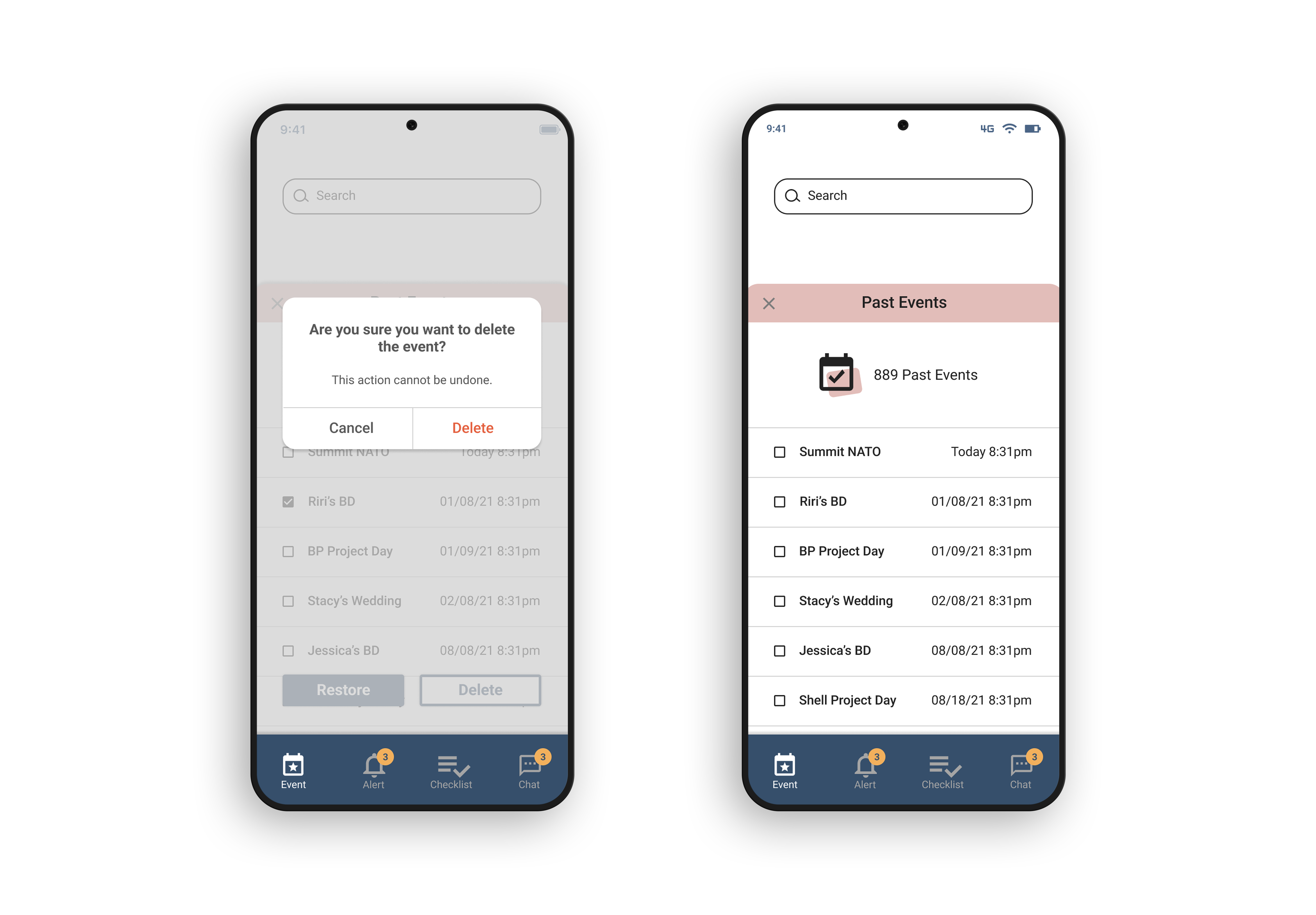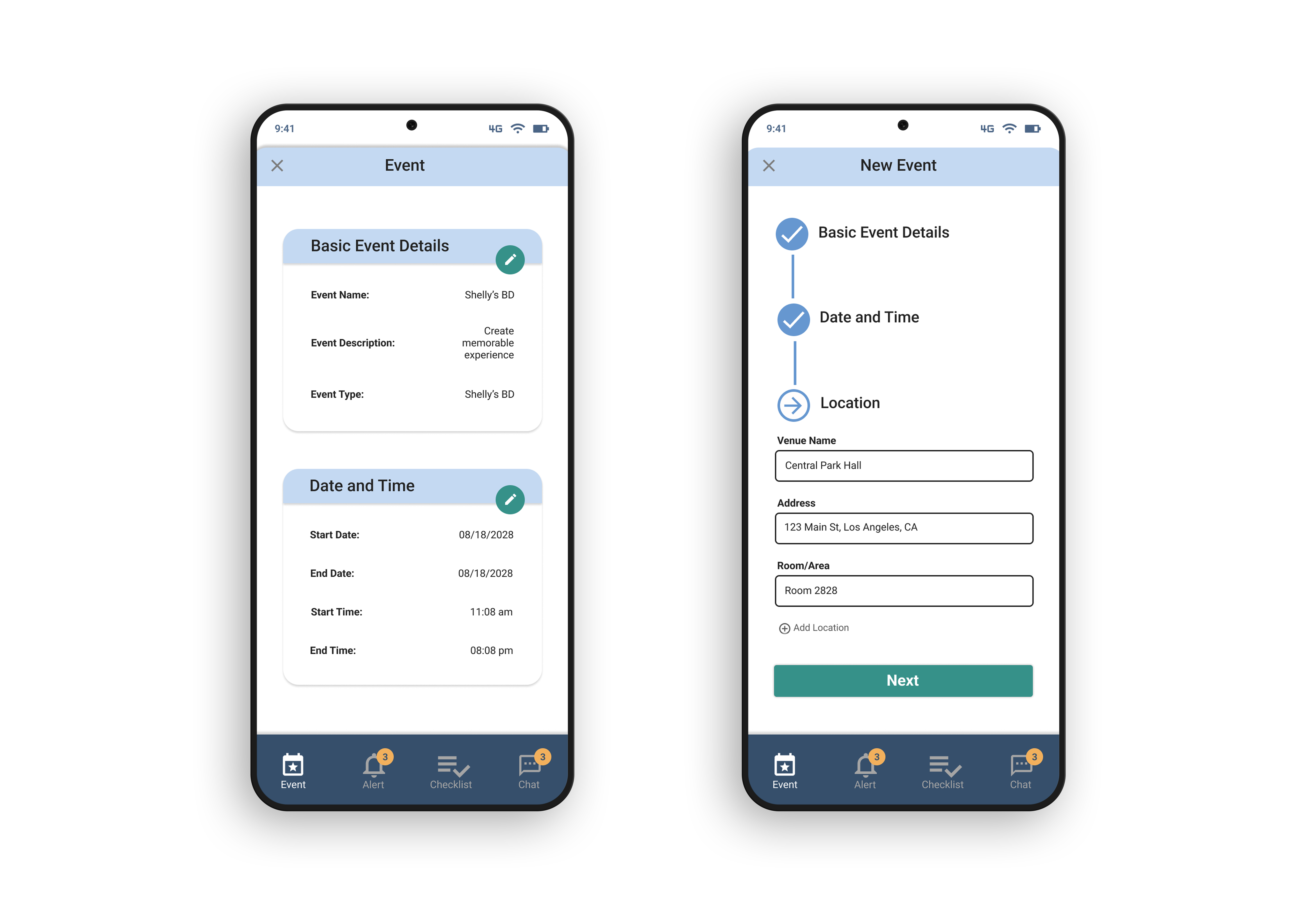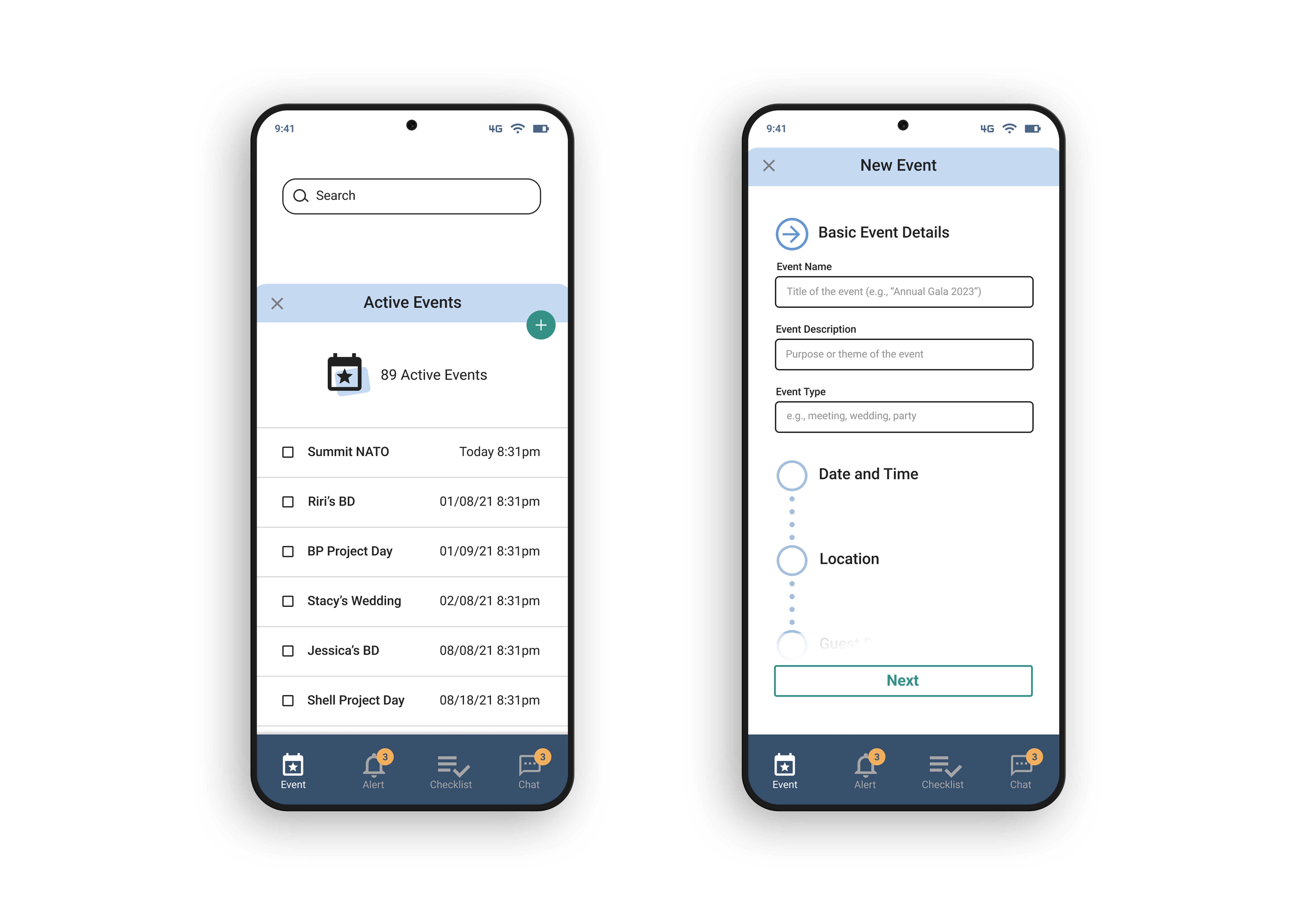 I have designed the tool that allows an event planner to discuss the event in detail with the client, and the ability to share messages and files in real-time, with the option to be alerted in advance of the tasks and deadlines associated with an event. The tool can help create checklists, follow all planning steps, track an event timeline.