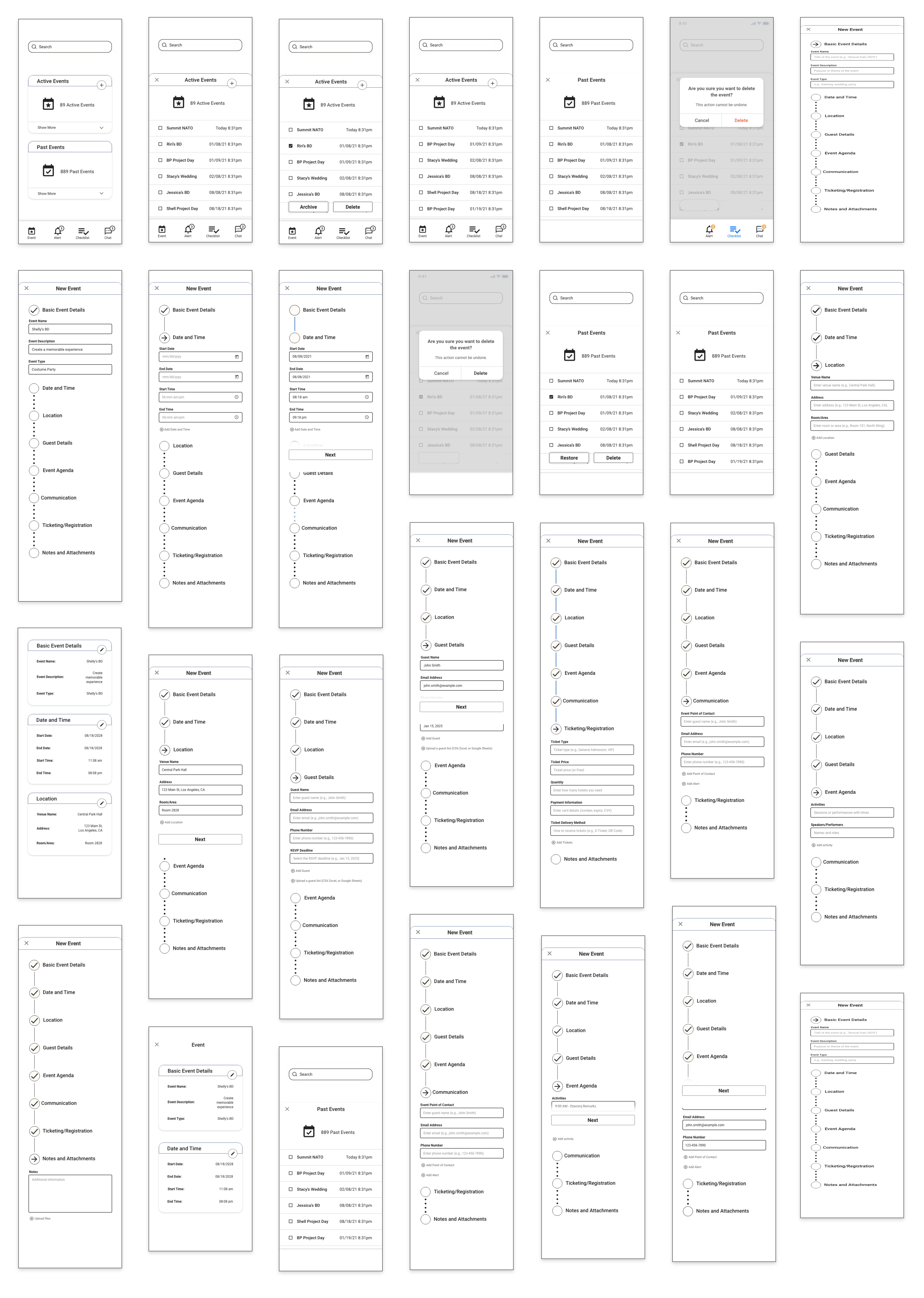 During the design and research, I identified the typical processes of event planning, which people are involved in planning, what problems they experience in the event planning, and find possible solutions to these problems.