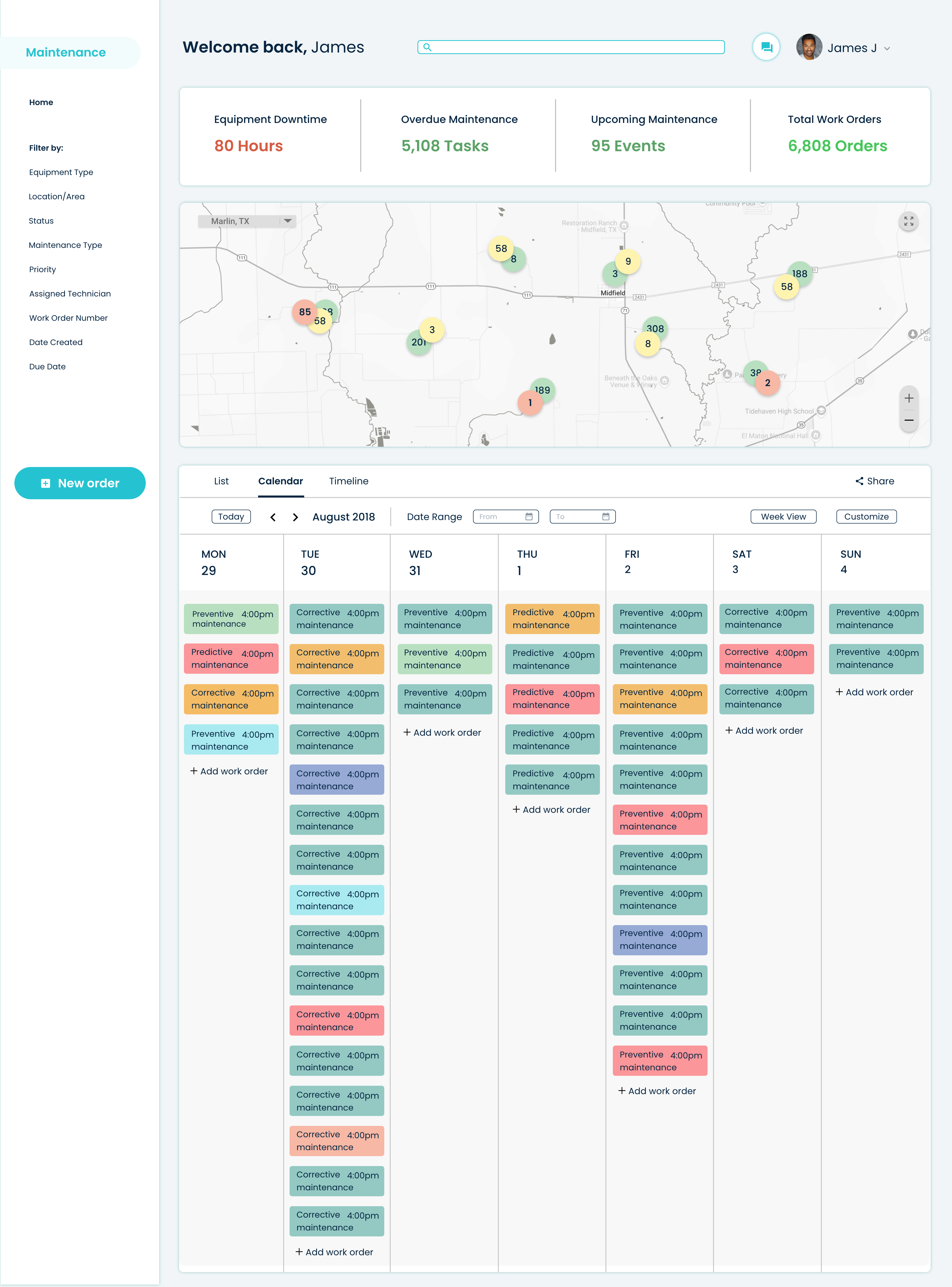 “As a member of the Facility Maintenance Team, I want to access a clear calendar of upcoming maintenance, filter tasks by type (PM, PdM, CM), and update work orders in real-time, so I can keep assets running and avoid unplanned downtime.”